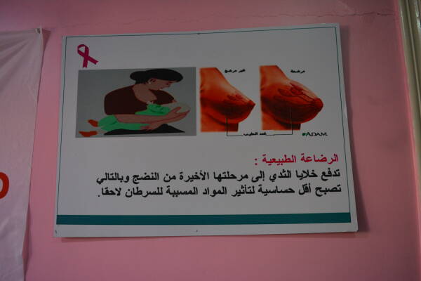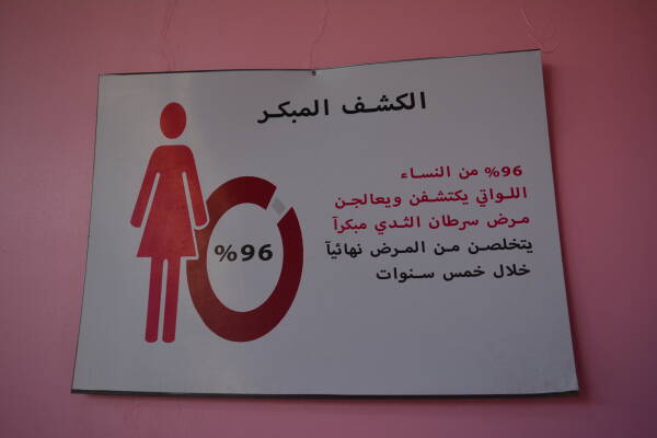 عن مركز سرطان الثدي قالت المسؤولة في الإدارة شيرين علي "على الرغم من أن هذا النوع من السرطان هو الأكثر شيوعاً بين النساء إلا أنه يصيب الرجال أيضا بنسبة 1 بالمئة، ويمكن تعريفه بخلل يصيب خلايا وأنسجة الصدر ومن ثم تحويلها لكتلة، فتؤدي إلى تعطيل عمل الخلايا والأنسجة الأخرى".