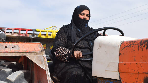 كذلك تعلمت فايضة محمد شيخ (55) عاماً قيادة الجرارات عندما كان زوجها مريضاً "تعلمت قيادة الجرار قبل عامين عندما كان زوجي بحالة صحية غير مستقرة، ومنذ وفاته وحتى هذه اللحظة أقود الجرار، وأعتمد على نفسي في الزراعة وجميع الأعمال من ري وحرث، وحتى رعي الأغنام"، مبينةً "رغم كبر سني أقود الجرار لأن ابني لا يزل صغيراً وبناتي يقصدن المدرسة، وبعد عودتهن من المدرسة تساعدنني في الزراعة وقيادة الأليات الزراعية".