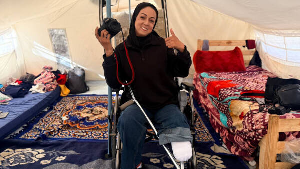 مصورة فلسطينية تفقد ساقها تدريجياً عبر سلسلة عمليات جراحية متكررة نتيجة نقص العلاج، وتواصل توثيق حياة النزوح بعد نجاتها من مجزرة وفقدان عائلتها، محوّلة الكاميرا إلى أداة صمود ومقاومة.