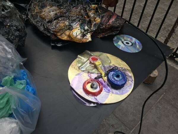 وأوضحت ثريا حلال أن "هذه المجسمات المجسدة بفعل النار والشيّ والحرارة صادمة، وتعبر عن المأساة بين ثنايا الروح والتي رائحتها النفاذة تتواجد في زوايا المعرض، هو نوع من الفنون ينتمي إلى الفن المفاهيمي، وهو فن يعتمد على الأفكار وحرية التعبير بكل الوسائل المتاحة، وباستخدام مواد غير مألوفة لتعبر عن حالات الفوضى داخل النفس البشرية، وعبر تشويه الأشكال، وربطها زمنياً بحوادث مؤلمة وبتعبير فوضوي بمعظمه، هي قصص اختزلتها بلغة الفن والتشكيل، فالعروس تشكلت من بقايا البلاستيك المركونة التي أجمعها عبر فترات متباعدة، ومن شبك حديدي استخدمته كدعامة للعمل من منزلي الذي أصيب في حرب تموز، وكذلك بقايا شجرة يابسة على الشرفة بعد اضطرار العائلة للهجرة حينها ولفترة أكثر من شهر، وموتها عطشاً، أما شعر العروس فمن زجاجات بلاستيكية قمت بقصها وثنيها بالحرارة، وشكلت الوجه باستخدام أقراص مدمجة CDs كان مصيرها النفايات ومواد أخرى، فهي مزيج من المشاعر المختلفة وبمواد مهملة وغير مألوفة، وبالتالي فلكل من هذه المجسمات حكاية وذكريات خاصة، أثرت بي وترجمتها بهذا الشكل الصادم، بالإضافة إلى مصاعب ومشاعر وذكريات عشناها، منها حرب تموز ومجزرة قانا وصولاً إلى انفجار بيروت لتحويلها إلى عمل فني يحاول تخليدها ليس في الذاكرة فقط".