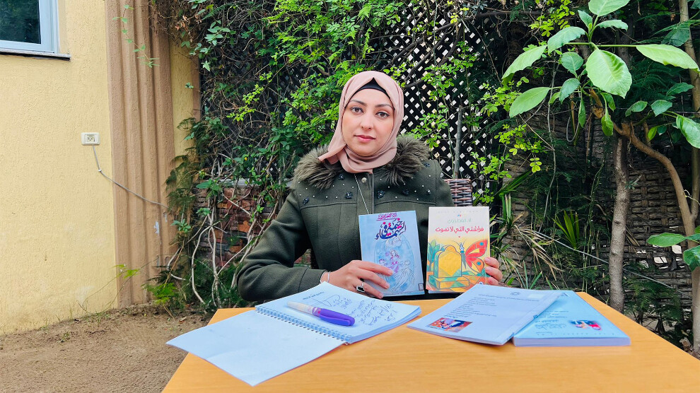 وأوضحت أن "تلك الدواوين لم تكن وحدها ما أنجزت فقد كتبت مسرحية شعرية بعنوان "أوركيدا"، وكتاب أخر بعنوان "يكلمني كنان" وهو عبارة عن نصوص سردية كنت أتخيل بها طفلي الذي قتل خلال الهجوم وكأنه يكلمني وأنا أرد عليه"، مؤكدة أن الفقد من أقسى المشاعر الإنسانية التي من الممكن أن يمر بها الإنسان، لكنها طوعت تلك المشاعر لتحي سيرة صغارها في كتب يقرأها العالم وتكشف الستار عن بشاعة جرائم القوات الإسرائيلية.