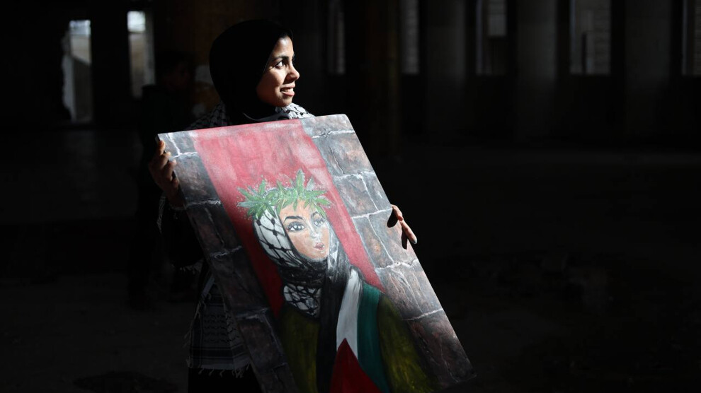 "سيدة الأرض"… لوحة فنية تُولد من الركام مع حلول يوم الأرض الفلسطيني