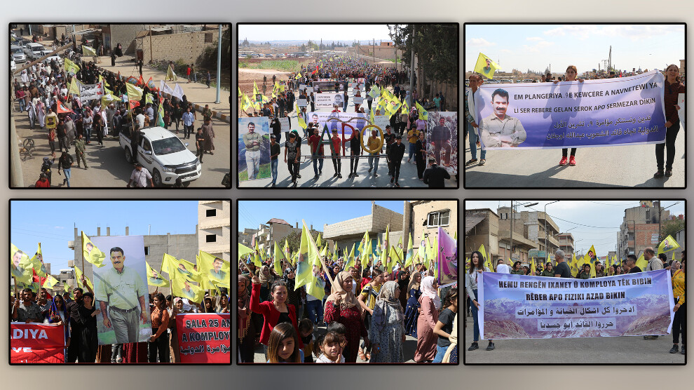 وفي مدينة قامشلو وتحت شعار "ادحروا كل أشكال المؤامرات... وحرروا القائد جسدياً"، خرج اليوم الآلاف في مسيرة حاشدة مستنكرين المؤامرة الدولية، ومعاهدين باسترجاع المناطق المحتلة.