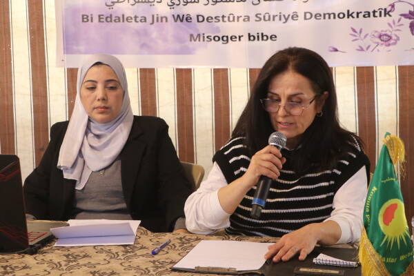 حلب ـ اختتمت الندوة الحوارية التي نظمت تحت شعار "عدالة المرأة ضمان لدستور سوري ديمقراطي" بجملة من القرارات التي أكدت على ضرورة مشاركة المرأة بنسبة 50 بالمئة، والاقتياد بثورة المرأة في شمال وشرق سوريا التي أحدثت تغيراً جذرياً في الواقع الاجتماعي والسياسي بنضالها.