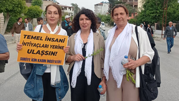 كانت النساء اللواتي تجمعن أمام مبنى الـ PTT قادمات من مدن عديدة، فتم بناء جدار السلام هناك، ثم دخلت النساء إلى قبر الخضر، ورفعن لافتة كُتب عليها "العلويون يُقتلون، والنساء يُختطفن في سوريا، لن نبقى صامتين"، وشاركت النساء في المسيرة بشعارات مثل Jin Jiyan Azadî""، "عاش تضامن المرأة"، وسط تصفيق وهتافات.