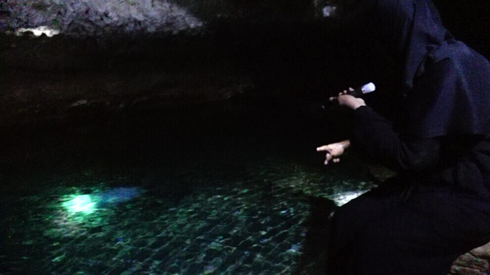 وأضافت "من المعروف أن الجبال عادةً ما تكون فوق سطح الأرض، لكن ما نراه هنا داخل هذا الكهف يوحي بوجود جبل آخر مخفي في أعماق الأرض"، مؤكدةً أنه بعد وصولها إلى عين الماء لا يزال مصدرها مجهولاً وغير ظاهر للعيان، فيما يتدفق الماء منها نحو الخارج، تأتي المياه من جهة الجنوب وتتجه شمالاً، ويبدو أن طريقة تشكّل العين تشبه تكوّن الجداول الجوفية الطبيعية.