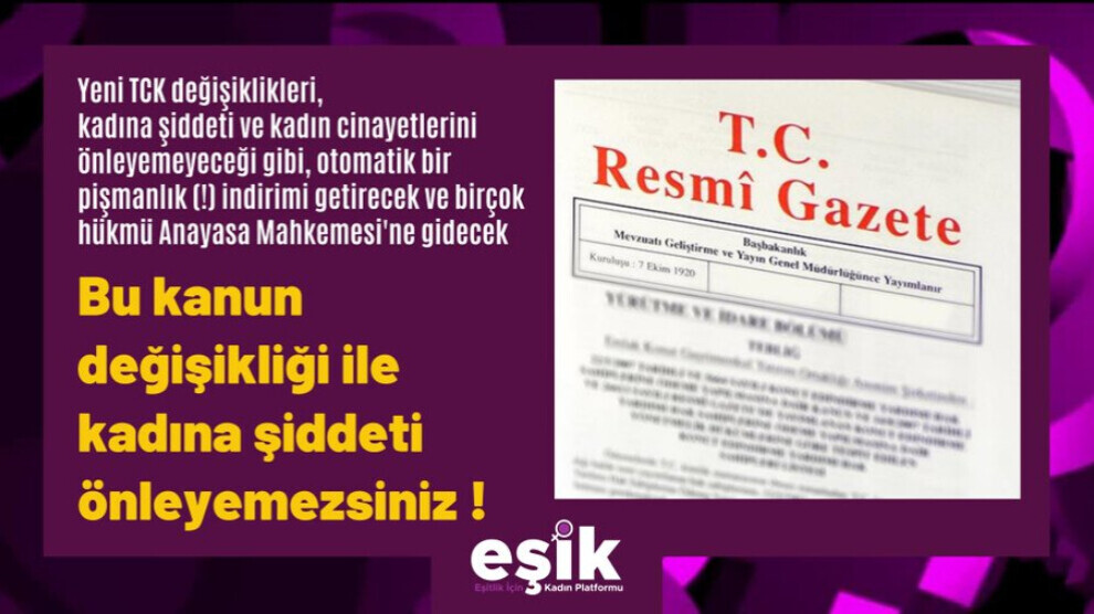 أكدت منصة المرأة للمساواة "EŞİK"، أنه بعد نشر قانون العنف ضد المرأة في الجريدة التركية الرسمية، ستخلق اللائحة الجديدة مشاكل جديدة، ناهيك عن قتل النساء والعنف ضدهن.