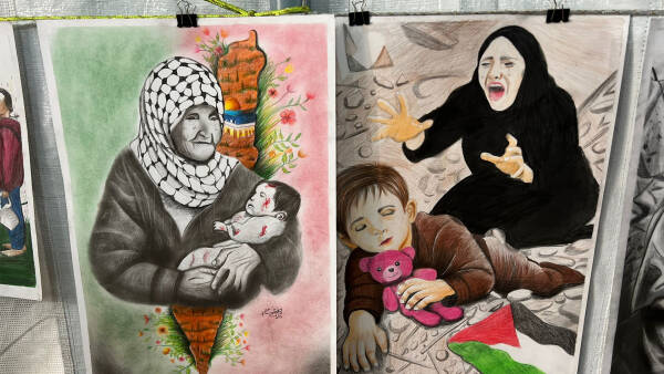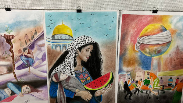 وعن المشاركين في المعرض أوضحت أن قرابة 50 فناناً شاركوا بأعمال مختلفة عبرت عن الحرية، وظلم السجان، والنزوح، والاعتقالات التي حدثت خلال الغزو البري لقطاع غزة خاصة في المستشفيات والبيوت المدنية سواء للرجال أو النساء، مبينةً أن الفن أبسط طرق التعبير التي يمكن للفلسطينيين عبرها مخاطبة العالم وإيصال صوتهم دفاعاً عن حقوقهم المشروعة.