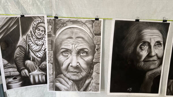 وأكدت أنها تلقت إشعاراً بالمشاركة قبل يومين فقط، فسارعت إلى شراء اللوحات والألوان، لكنها فوجئت بارتفاع أسعارها بشكل كبير، ولعدم قدرتها على تحمل التكاليف، لجأت إلى استخدام أدوات الزينة النسائية مثل محمر الخدود ومحدد الملامح والكحل وغيرها، مضيفةً أنه حتى هذه الأدوات لم تكن رخيصة، وعندما طلبت المساعدة من نساء عائلتها استغربن الفكرة في البداية وضحكن، لكنهن سرعان ما قررن دعمها، فتبرعت كل واحدة منهن بأداة من أدواتها.