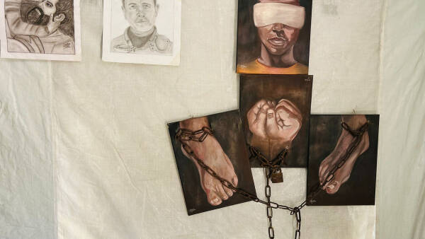 من جانبها، أوضحت الفنانة نسمة أبو حصيرة أن سبب مشاركتها في الفعالية يعود إلى ما عاشته من الفقد سواء القتلى أو الأسرى، إذ قتل 45 شخصاً من أقاربها خلال الهجوم، فيما أسر عدد آخر، ما دفعها إلى التعبير عن مشاعرها عبر الرسم والألوان، مشيرةً إلى أنها تدعم كافة الأسرى الفلسطينيين في المعتقلات الإسرائيلية، خاصة الأسيرات اللواتي يعشن الويلات وحدهن.