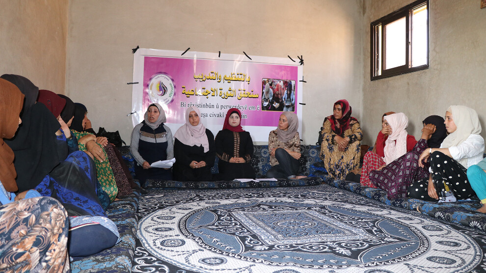 عقد مكتب تجمع نساء زنوبيا في منبج بشمال وشرق سوريا، اليوم السبت 18 حزيران/يونيو، ضمن فعاليات حملة "بالتنظيم والتدريب سنحقق الثورة الاجتماعية"، 12 اجتماعاً بالتعاون مع مركز دراسات الجنولوجيا "علم المرأة" ومجلس المرأة في حزب سوريا المستقبل، ولجنة المرأة في الإدارة المدنية الديمقراطية في منبج وريفها.