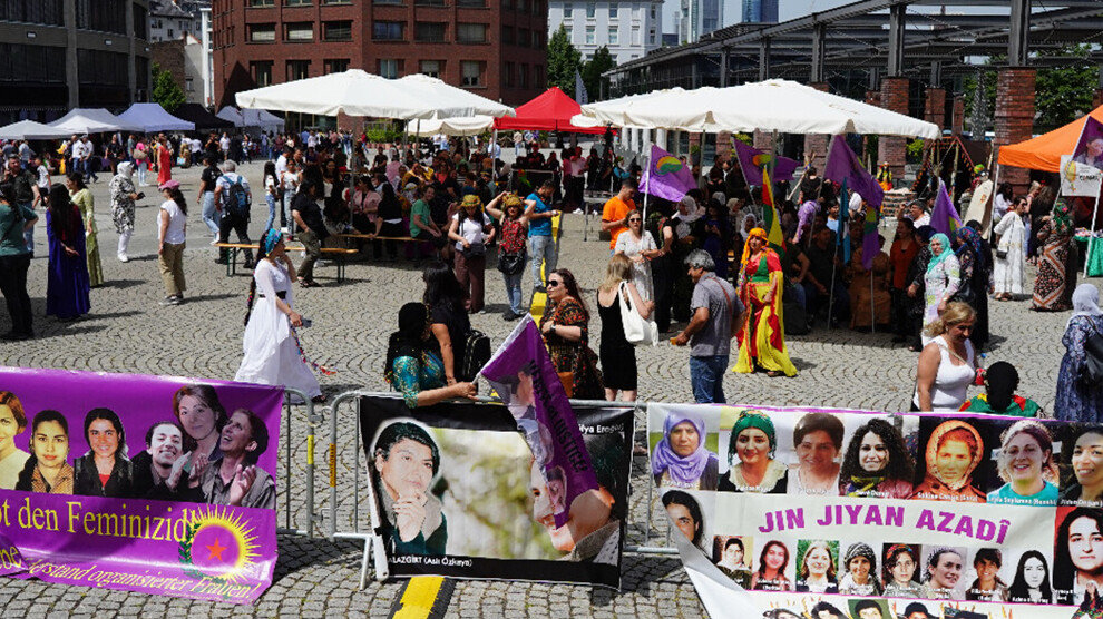 وألقت المتحدثة باسم YJK-E آيتن كابلان كلمة باللغة الألمانية حول الهدف من إقامة المهرجان ونضال المرأة، ثم أضافت ميرال ألكان الألوان مع الأغاني التي غنتها باللغتين الكردية والتركية.