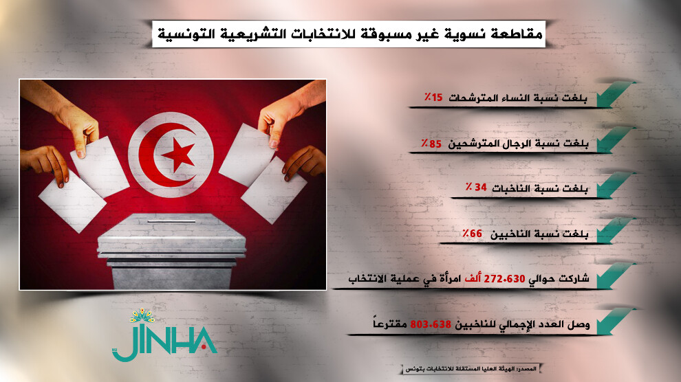 لم تتجاوز نسبة النساء الناخبات الـ 34% في الانتخابات التشريعية التي شهدتها تونس أمس السبت 17 كانون الأول/ديسمبر.