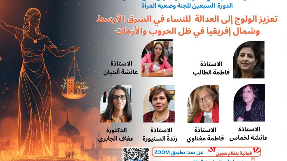 المغرب ـ ناقشت ناشطات وخبيرات في قضايا حقوق المرأة، خلال ندوة دولية عقدت اليوم الجمعة 13 آذار /مارس عن بعد، على هامش الدورة السبعين للجنة وضع المرأة التابعة للأمم المتحدة في نيويورك، سبل تعزيز وصول النساء إلى العدالة في منطقة الشرق الأوسط وشمال إفريقيا، في ظل الحروب والأزمات السياسية والإنسانية التي تشهدها المنطقة.