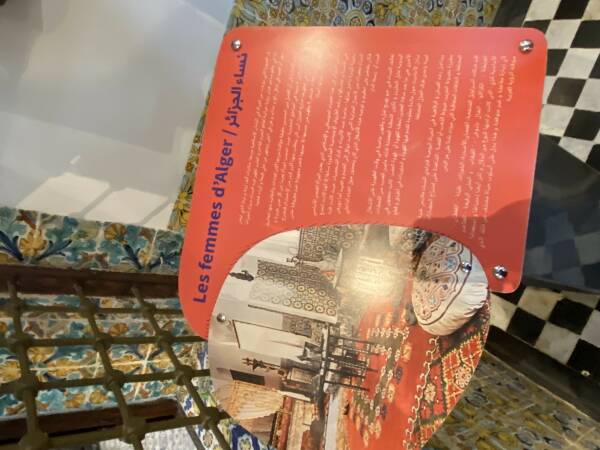ويعكس المعرض أيضاً ثراء التراث الجزائري للملابس التقليدية وعادات المرأة في الحياة اليومية، فقد روجت بعض الصور التاريخية للمرأة في البلدان الإسلامية لعالم ساحر مليء بالحلي الفخمة والأزياء المزخرفة، حيث تظهر النساء في أبهى حللهن، مع الالتزام بالاحتشام المفروض أحياناً بالعادة أكثر من التعاليم، ورغم القيود الاجتماعية، كانت المرأة تتمتع بحرية كبيرة داخل منزلها، خصوصاً بين الأثرياء وكبار الشخصيات، حيث كانت معفاة من الأعمال المنزلية التي كانت تُوكَل للخدم والعبيد، بينما يقتصر دورها على تنظيم الأسرة والأشغال المتعلقة بالفناء الداخلي للبيت، أو ما يُعرف بـ "وسط الدار".