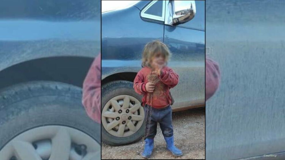 ونشر ناشطون على مواقع التواصل الاجتماعي صورة للطفلة وهي تلعب داخل المخيم وعلى إحدى يديها سلاسل حديدية، كما نشروا تسجيلاً للطفلة تقول فيه أنها تحب والدها رغم أنه ضربها؛ لأنها خرجت إلى الخيمة المجاورة.