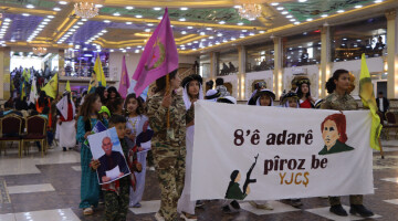 احتفلت نساء مخيم مخمور للاجئين باليوم العالمي للمرأة بحماس كبير، حيث ارتدين الزي الكردي، وتلقين رسالة القائد عبد الله أوجلان بفرح كبير.