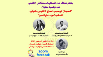 مع تراجع الاهتمام الدولي والإقليمي بالصراع الدائر في السودان، نظم تحالف ندى ندوة رقمية عبر تقنية الزووم تحت عنوان "السودان في مرمى الصراع الإقليمي والدولي: النساء وثمن حصار المدن" وبمشاركة عدد من الصحفيات والناشطات.