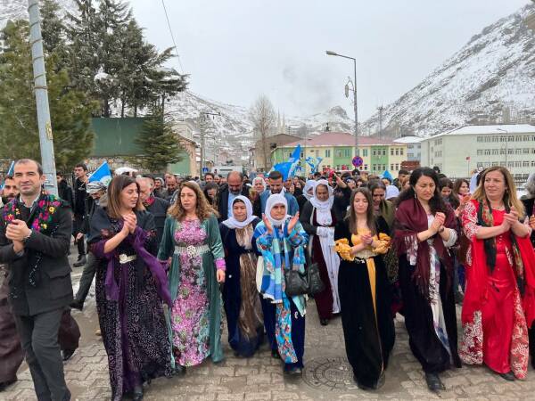 Şırnak- The first fire of 2022 Newroz was lit in the Beytüşşebap district of Şırnak province, near the border with the Federal Kurdistan Region. Newroz celebrations will be held this year with the motto “Dem dema serkeftinê ye (Now is the time to succeed)”. Representatives of political parties of the Kurdistan Alliance, the Democratic Society Congress (DTK), Peoples' Democratic Congress (HDK), Free Women’s Movement (TJA), and Peoples’ Democratic Party (HDP) and many people came together in Beytüşşebap to initiate 2022 Newroz celebrations. The people gathered at the building of the HDP in the district and marched to the center of the district by shouting the “Long Live Newroz” slogan.