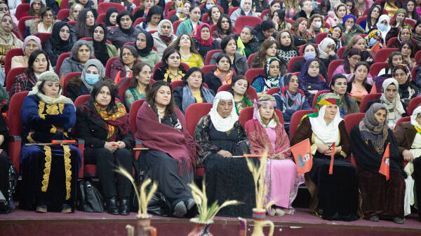 Yesterday, Kongra Star held its 9th General Congress in Hasakah with the motto, “We will win the Jin, Jiyan, Azadi revolution with the spirit of the women's revolution” with the participation of thousands of delegations. Members of many political parties and organizations such as the Women's Council of North and East Syria, the Syrian Women's Council, the Syrian Democratic Council, the Democratic Union Party (PYD), the Zenûbya Women’s Association, the Autonomous Administration of North and East Syria (AANES), the Future Syria Party and Syriac, Armenian, Christian, Arab and Yazidi women attended the congress.