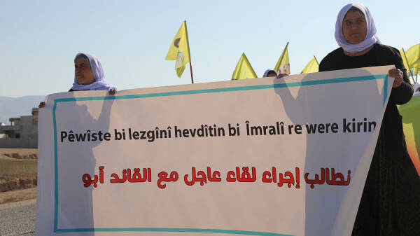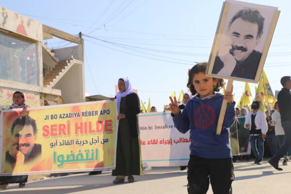 leader Abdullah Öcalan. The women, including Arab women, gathered near Seytera Sinunê to march to