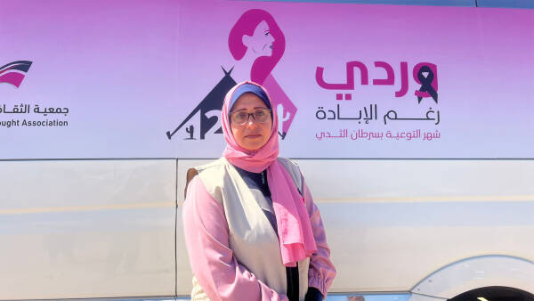 Gaza — Under the slogan “Pink Despite Genocide,” the Culture and Free Thought Association launched the Pink Bus, one of the key initiatives marking Breast Cancer Awareness Month. The campaign aims to raise health awareness and support women and girls facing the harsh conditions of displacement and humanitarian crisis.