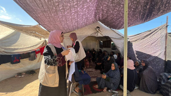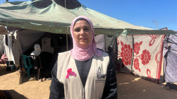 Health educator Kholoud Shaheen describes this year’s campaign as “the hardest one yet.” With mass displacement and women crammed into tiny areas, challenges have multiplied. “But we had to adapt,” she explains. “We divided large camps into smaller groups to reach as many women and girls as possible. We may live under constant bombing, but I don’t want a woman to die in silence simply because she didn’t know she could check herself.”
