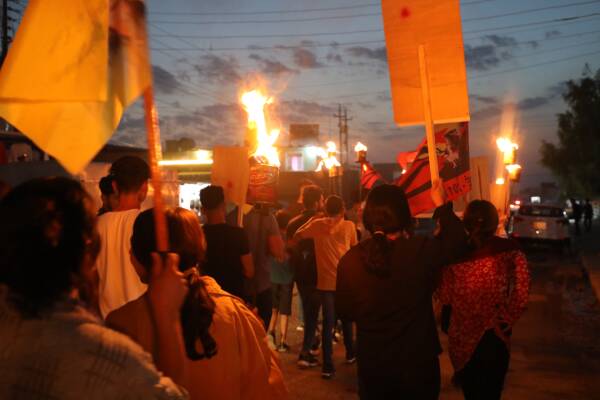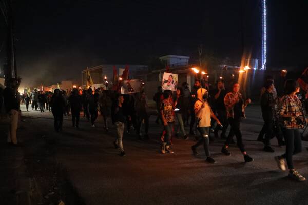The women of Shengal held a torch march to protest the ongoing Turkish attacks on Shengal and call on the Iraqi government to close its airspace to Turkey.