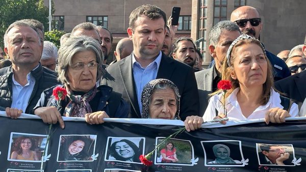 At the ceremony, İshak Kocabıyık, co-spokesperson of the October 10 Peace Association, made a speech saying, “Imagine a state that remains silent against the massacre carried out against its own people. A state that not only remains silent but also paves the way for the murderers and pat them on the back. We have made efforts for the truth to be revealed, for justice to be truly established.  We still make efforts. For eight years, the state and the ruling party have ignored our demands and tried to cover up the massacre. For eight years, we have been seeking justice and demanding peace. We will keep struggling until this square becomes a Peace Square, until a monument is built in this square to remind us of this massacre.”