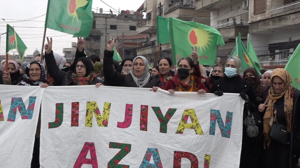 Amid escalating political and military attacks targeting the Rojava project and the Women’s Revolution, women from the city of Qamishlo and its surrounding areas organized a solidarity vigil on Saturday, January 31, to renew their pledge to protect the gains of the revolution and to affirm that women’s will shall remain a strong barrier against attempts at exclusion and the breaking of peoples’ will.