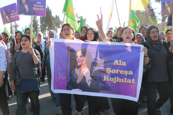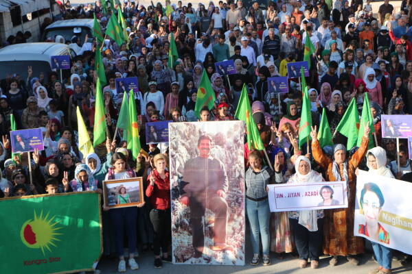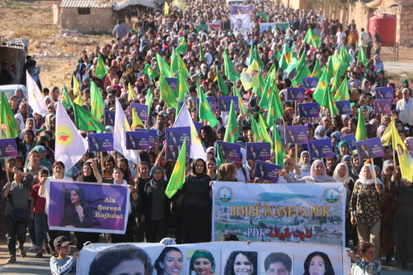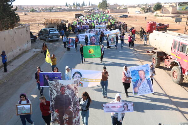 Thousands of women of Afrin and Shahba held a march in the Ehdas town of Shahba to condemn the killing of Nagihan Akarsel. The women holding the photographs of Nagihan Akarsel, Jina Mahsa Amini, Zeyneb Saroxan chanted slogans such as, “Jin, Jiyan, Azadi” and “Damn betrayal”. The women began to march from the town center to the park in the town.
