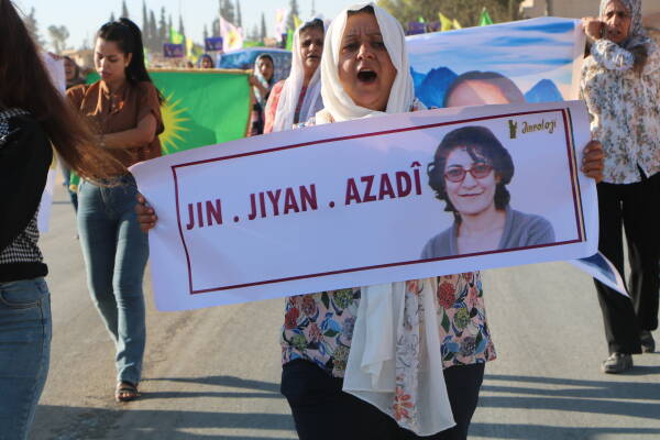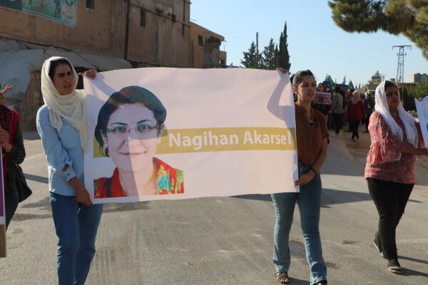 After the march, Zelox Bekir, co-chair of the Afrin Canton Assembly, made a speech condemning the killing of Nagihan Akarsel. “The attack on Nagihan Akarsel was an attack on all women struggle for freedom,” she said in her speech.