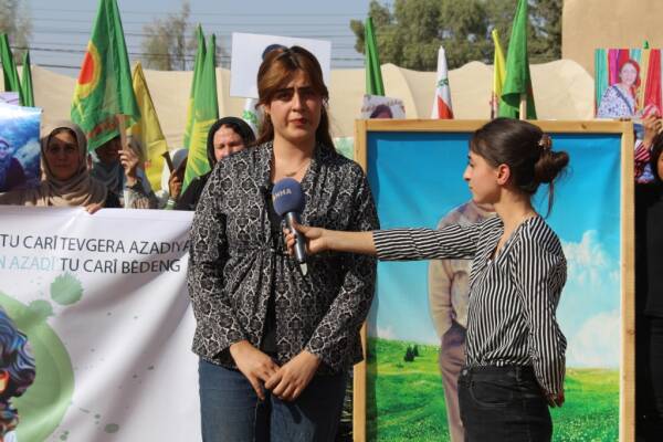 Lîlav Hisên, a coordinating member of Kongra Star in Hasakah, read a joint statement on behalf of women. “We, as Kongra Star, promise to resist and fight like Rêber Öcalan (Leader Öcalan) who gave us freedom. We continue to struggle for his physical freedom. We will continue to hold protests and actions.”