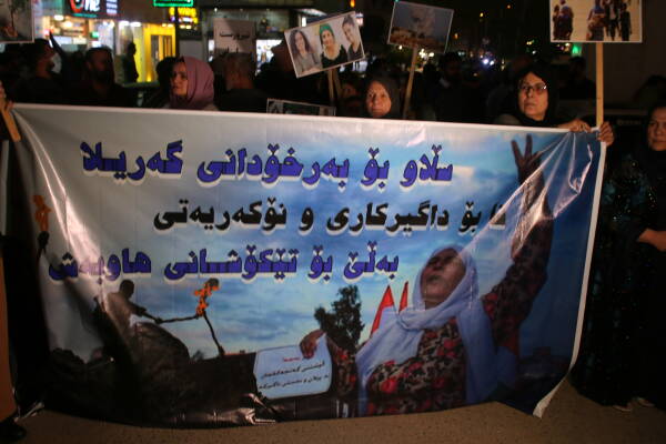 Sulaymaniyah - Women took to the streets of Sulaymaniyah last night to protest the military operation launched by Turkey in the Kurdistan Region on April 17 with the support of the Kurdistan Democratic Party (KDP). The women carried photographs of killed women and shouted slogans such as, “Terrorist Erdoğan” and “No to occupation”. They marched from Salim Avenue to Emme Sureke.