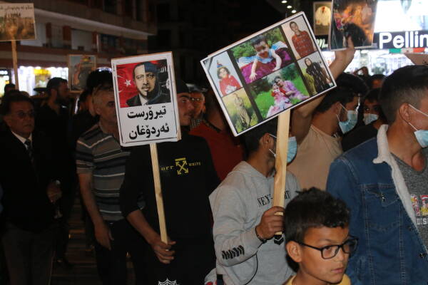 Sulaymaniyah - Women took to the streets of Sulaymaniyah last night to protest the military operation launched by Turkey in the Kurdistan Region on April 17 with the support of the Kurdistan Democratic Party (KDP). The women carried photographs of killed women and shouted slogans such as, “Terrorist Erdoğan” and “No to occupation”. They marched from Salim Avenue to Emme Sureke.
