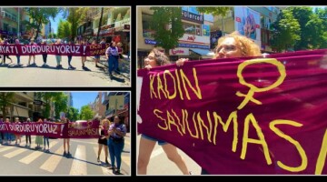 Women gathering at the Ankara’s Tunalı Hilmi Avenue unfurled a banner reading “We stop the life” and blocked the traffic. “We don’t withdraw from Istanbul Convention, we don’t accept one-man’s decision,” the women shouted. Female lawyers made a statement in front of the Sıhhiye Courthouse and distributed brochures. The women said, “We want to protect our lives and rights.