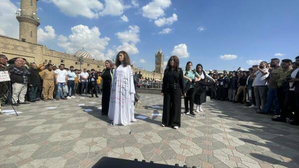 The play performed by seven women theatre players in front of the Citadel of Erbil attracted great attention. The play tells the stories of women from different backgrounds and social statuses experiencing violence.