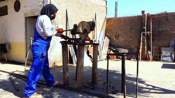 Aya performs every task expected of a blacksmith—measuring, cutting, welding, and shaping—proving that no job is too difficult for a determined woman.