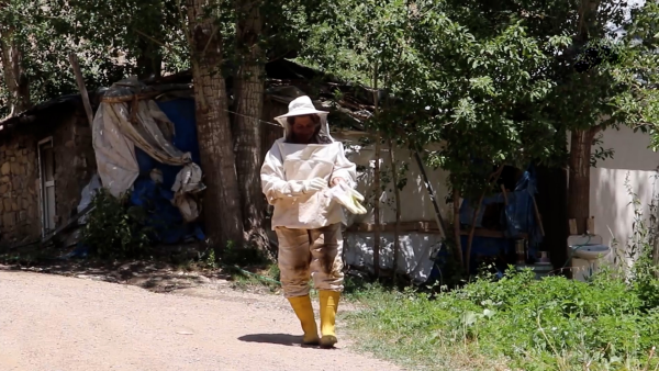 Muhabbet Beşer has been working as a beekeeper in Gever for years. She broods about what she will do in winter due to fuel price hike.