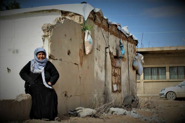 حسکه- عایشه خضر ۵۰ ساله در دو سال گذشته کل زندگی خود را با آوارگی زندگی کردە است. او منتظر بازگشت به روستای خود است و میگوید: «حتی اگر جلوی خانهی فروریختهام چادر بزنم، راضی هستم، میخواهم در زمین خود و در سایهی خانهام باشم.»