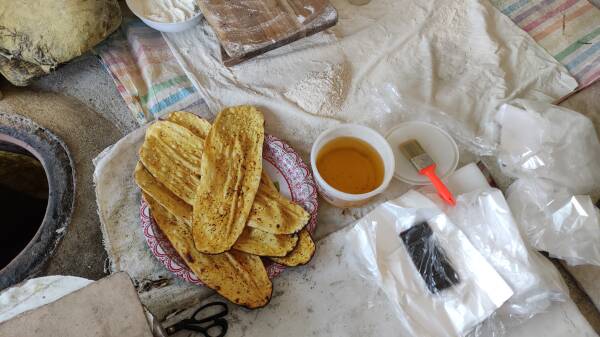 شهلا و خواهرش نیز کلوچه و نان روغنی سنتی «کولیره» درست می‌کنند. شهلا دربارەی کار و بازار فروشش می‌گوید: « با خواهرم با هم‌ کار می‌کنیم و چون بچه‌ی کوچکی دارم به تنهایی نمی‌توانم از او مراقبت کنم و خواهرزاده‌ام در کار به ما کمک می‌کند و در حین کار از او مراقبت می‌کند. با زبان روزه از ساعت ۱۲ مشغول کار می‌شویم. اول خمیر را آماده می‌کنیم و بعد خوب ورز می‌دهیم و بعد از یکی دو ساعت تنور خانگی را گرم می‌کنیم و شروع به پختن نان می‌کنیم. هر روز تمام نان‌های محلی و نان روغنی‌های دستی را می‌فروشیم. بیشتر دوست و آشنا و فامیل برایمان تبلیغ می‌کنند».