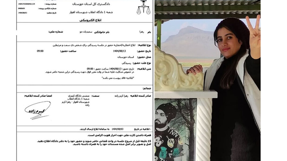 مرکز خبر-   براساس گزارش‌های منتشر شدە توسط مرکز مشاوره و آموزش حقوقی «دادبان»، خانواده دادخواه سعیدیان‌جو از احضار زهرا به شعبه یک دادگاه انقلاب اهواز خبر داده‌اند. برادر او با انتشار تصاویری از احضاریه در اینستاگرام نوشت که اتهامات واردشده به خواهرش «واهی و بی‌اساس» هستند.