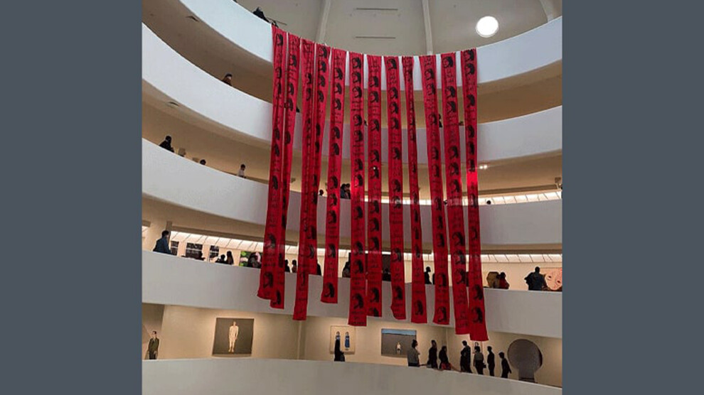 مرکز خبر- شنبه ٣٠ مهر ماه، چند هنرمند ناشناس در حرکتی اعتراضی و غافلگیر کننده، تصاویری از ژینا امینی همراه با شعار «زن، زندگی، آزادی» را بر روی بنرهایی سرخ رنگ، در موزه‌ی مشهور گوگن‌هایم در نیویورک به نمایش درآوردند.