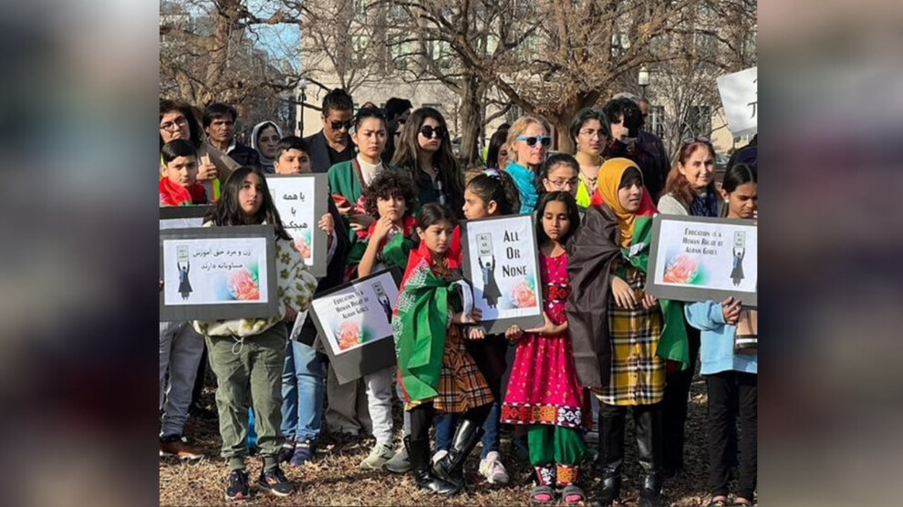 در این تجمع اعتراضی شهروندان افغانی با همراهی شماری از آمریکاییان با در دست داشتن پلاکاردهایی کە روی آن نوشتە شدە است «نان کار آزادی، یا همە یا هیچ کس» خواستار لغو ممنوعیت کار و تحصیل زنان شدند و خطاب بە آمریکا و دیگر کشورها اعلام کردند این سیاست طالبان مصداق آپارتاید جنسیتی است و تنها با بیانیە، شعار و ابراز همدلی تغییر نخواهد کرد.