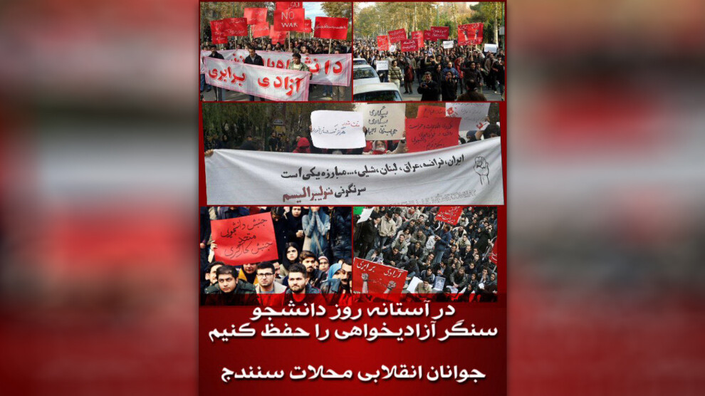 ما جوانان انقلابی محلات سنه با خواست آزادی کلیهی زندانیان و دستگیرشدگان اخیر، لغو حکم اعدام و دفاع از حق آزادی اعتراض و اعتصاب و اتمام فضای سرکوب و خفقان و برابری زن و مرد به پیشواز روز دانشجو میرویم و خواهان محاکمهی تمامی مسببین کشتارهای اخیر از زاهدان تا کوردستان هستیم و دوشادوش کارگران، معلمان، دانشجویان و سایر جنبشهای پیشرو در جامعه مبارزه تا سرنگونی حاکمیت جمهوری اسلامی و برپایی یک دنیای آزاد و برابر را ادامه خواهیم داد.