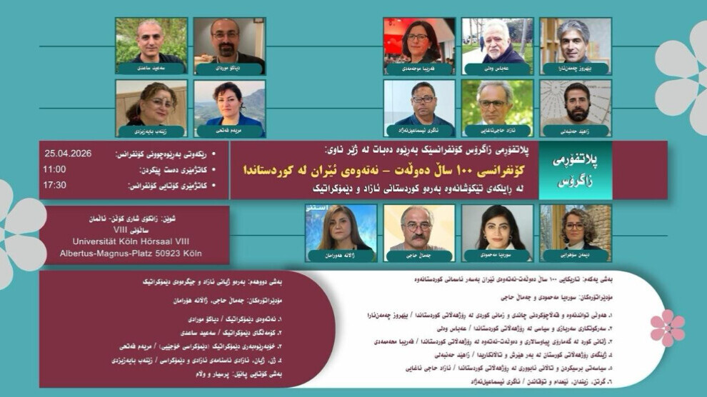 مرکز خبر- در تاریخ ۲۵ آوریل، کنفرانس «۱۰۰ سال دولت-ملت ایران در کوردستان» به ابتکار «پلتفرم زاگرس» در شهر کلن آلمان برگزار می‌شود.