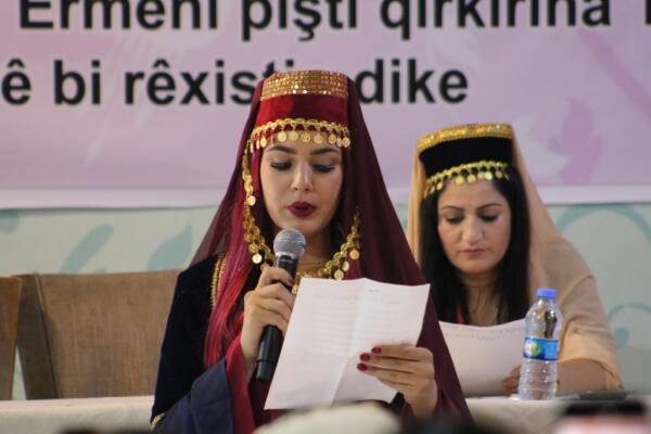 لوسناک کاوریان عضو شورای جامعهی ارامنه با بیان اینکه زنان ارمنی ارادەای قوی در برابر نسلکشی و قتل عام دارند، سخنان خود را اینگونه ادامه داد: «قتل عام سال ١٩١۵ درد بزرگی در تاریخ برای جامعه ارامنە بود. این کشتار باعث مهاجرت زنان، کودکان، سالمندان و کشته شدن میلیونها نفر شد. هدف دولت عثمانی از بین بردن مردم ارمنی، نابودی تاریخ و فرهنگ آنها بود، این سیاست امروزه توسط دولت اشغالگر ترکیه همچنان ادامه دارد. اما امروزه زنان ارمنی خود را در برابر تمامی برنامەهای نسلکشی تحت نظارت ادارەی خودگردان خود را سازماندهی کرده و اتحاد خود را شکل دادهاند و این پاسخی است به نقشههای پلید دولتها. همچنین زنان ارمنی برای دفاع از سرزمین خود، قدرت خود را در عرصەی نظامی ایجاد کردە و خود را سازماندهی کردەاند. در کشتار سال ١٩١۵، زنان مورد خشونت، قاچاق و تجاوز جنسی قرار گرفتند. امروز نیز دولت ترکیه از طریق گروهکهای داعش به این سیاست علیه زنان ادامه میدهد و این در کشتار شنگال نیز بە وضوح دیده شد. از آنجایی که زنان جامعه را آموزش میدهند، امروزه مورد هدف همهی برنامەها قرار گرفتهاند. ما به عنوان اتحادیهی زنان ارمنی این سیاست را قبول نداریم و با مبارزهی خود از این اقدامات جلوگیری خواهیم کرد.»
