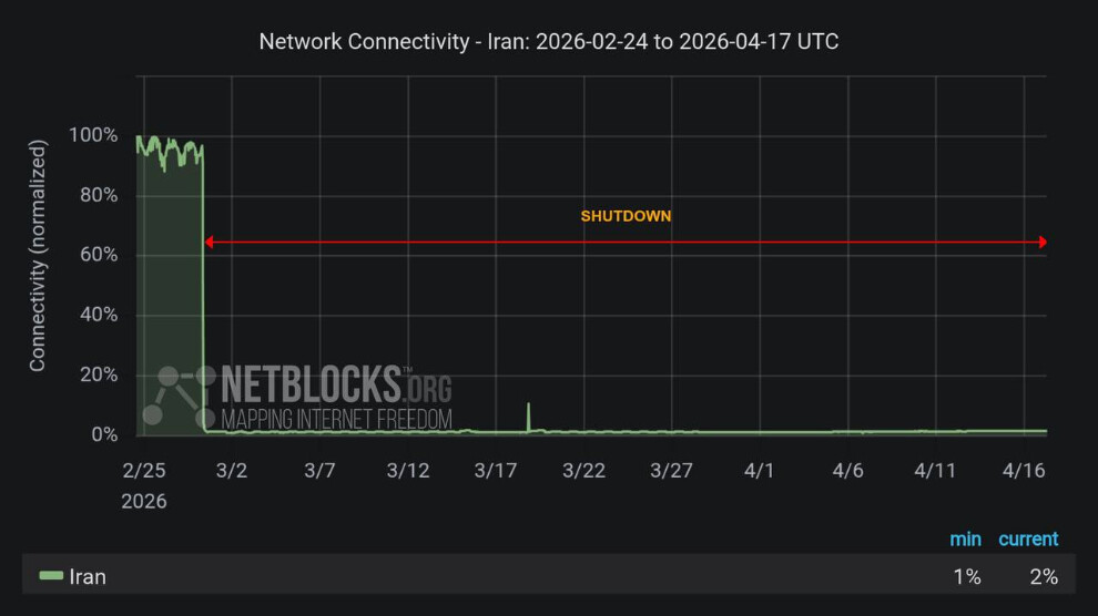 در هفت هفته گذشته، سطح دسترسی بین‌المللی در ایران در حدود ۱ درصد یا کمتر باقی مانده؛ وضعیتی که به گفته این نهاد، نشان‌دهنده ایجاد دسترسی محدود برای گروه‌های خاص و همسو با سیاست‌های جمهوری اسلامی است.