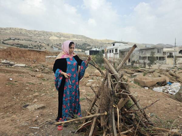 در باشور کوردستان، زن جوانی با دلی پر از امید تنها آتش نوروز را برافروخت