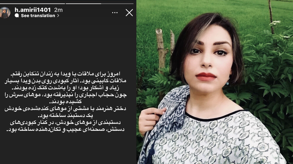 حمیدرضا امیری نوشت: آثار کبودی روی بدن ویدا بسیار زیاد و آشکار بود و او را به شدت کتک زده بودند چون حجاب اجباری را نپذیرفته بود و موهای سرش را کشیده بودند.